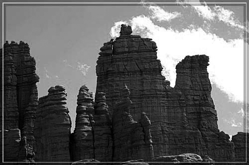 Sal Berge und den rückwärtigen Teil der Fisher Tower an.