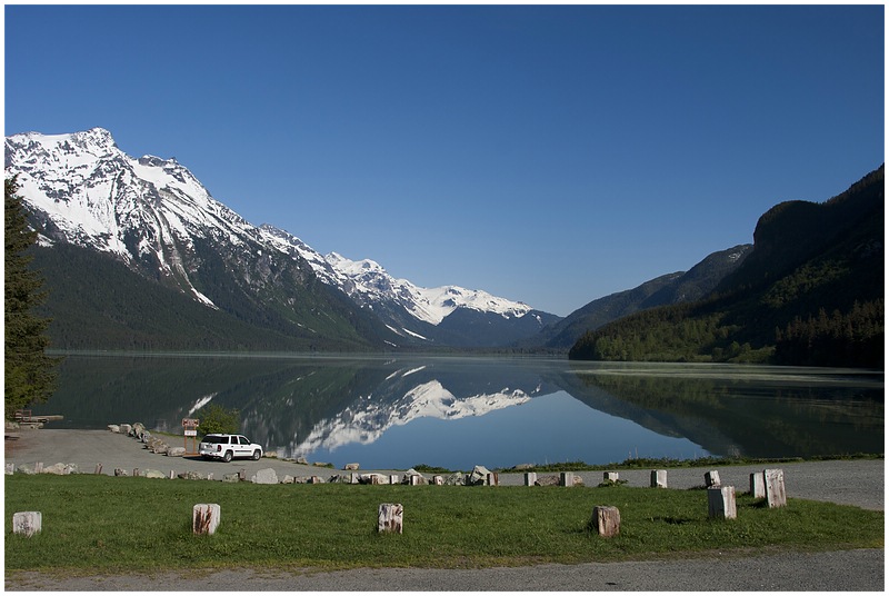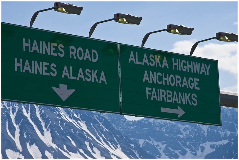 28.05.2010Wieder scheint die Sonne (10°C), als ich den CG verlasse. Erst geht es die gleiche Strecke zurück bis zum Hafen und dann weiter bis Haines.