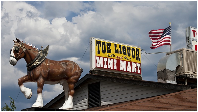 Nach ca 80 Meilen bin ich wieder an der US Grenze. Ein zwei Fragen und es geht weiter in Fahrtrichtung Tok. Um 13:00 bin ich in Tok. Bei Fast Eddy esse ich mir eine Pizza, zu viel für mich, den Rest nehme ich mit als Abendessen. Einen Supermarkt habe ich schnell gefunden aber einen Laden mit Bier, da muss ich mich an einen Einheimischen wenden.