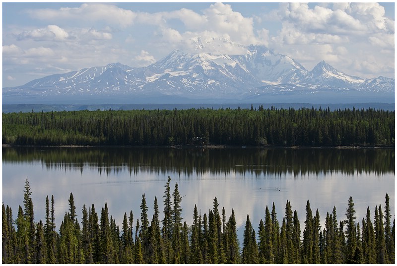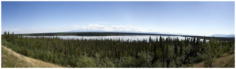 Von Tok aus geht es nun über den Tok Cutoff in Richtung Südwesten. Wieder eine andere Landschaft und sie ist traumhaft, die Berge im Hintergrund sind teilweise über 4000 m. Auf dieser Strecke sehe ich mehrere Elche, aber sie sind schneller von der Strasse verschwunden als die Bären und somit ist ein fotografieren kaum möglich. Ein vermeintlicher Wolf entpuppt sich aus der Nähe als süßes Hündchen.