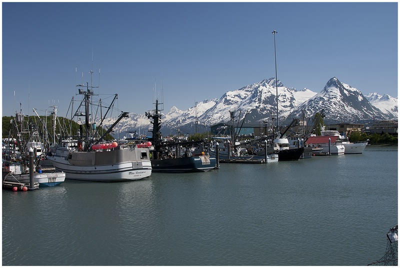 Die Landschaft öffnet sich und vor mir liegt der Prince William Sound und kurz danach kommt Valdez. Valdez mit seinen 4400 Einwohnern hat schon etwas von einer Stadt. Mein erster Weg geht zum Supermarkt und anschließend sehe ich mir die Stadt an. Vom Small Boat Harbor hat man einen wunderbaren Blick auf den Sound und die verschneiten Berge im Hintergrund. Im Fährhafen bekomme ich die Bestätigung, dass ich die nächsten Tage nicht mit der Fähre nach Whittier komme. Schade, denn nun muss ich die Strecke wieder zurück.