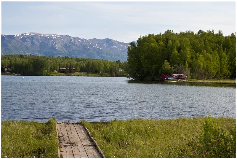 Elche und einen Adler. Ab Eureka Summit (3.322 ft) wird die Gegend wieder spannend. Vorbei geht es an Seen und Flüssen und im Hintergrund immer wieder Gletscher, wie zB den Matanuska Glacier. Den nächsten Ort den ich erreiche ist Palmer und ich sehe den ersten Mc Donald auf der Tour. Ich entschließe mich noch etwas zu fahren und hinter Wasilla (hier war Sarah Louise Palin Bürgermeisterin) werde ich einen CG suchen. Wasilla ist schon etwas größer mit seinen 6.700 Einwohnern. Etwas abseits der Stadt ist der Lake Lucille CG und den werde ich heute nutzen. Bezahlen ist nicht möglich es gibt keine Umschläge für die Registrierung. Nach Plan gibt es 59 Plätze, aber ich bin der einzige Besucher, wahrscheinlich ist der Platz noch gar nicht eröffnet.. Am späten Abend kommen noch zwei Fahrzeuge in das kleine Birkenwäldchen und das war es. Aber es wurde keine ruhige Nacht. Irgendwann werde ich wach und höre Bässe, die durch den Wald hallen. Um 02:00 immer noch dieses Gedröhne und dann ist Ruhe. Wahrscheinlich war ich zu dicht an einer Stadt.