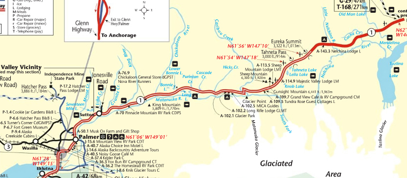 Glennallen. Die Strecke bietet alles, Gletscher, Wasserfälle,