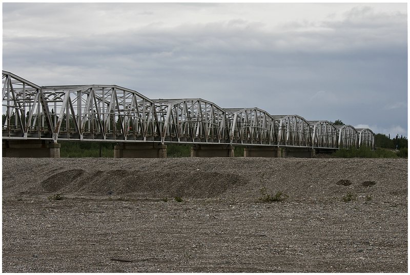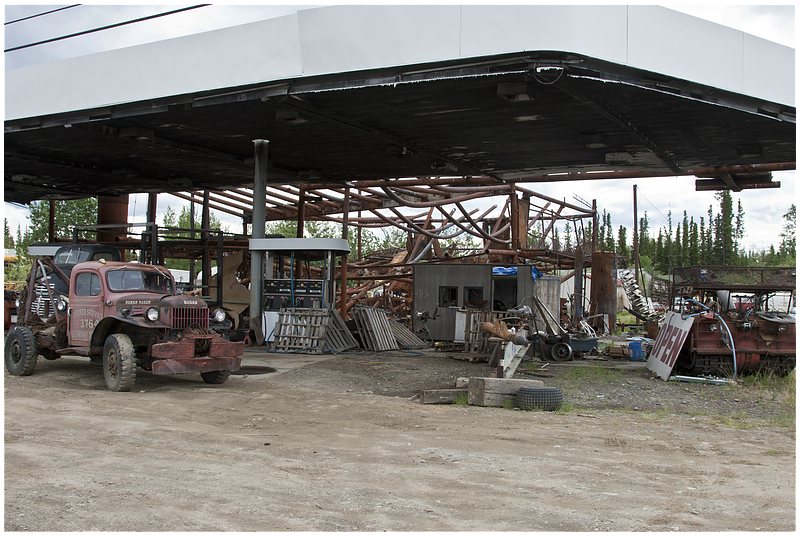 05.06.2010In der Nacht hat es immer wieder geregnet und der Himmel ist immer noch verhangen. Mein erster Stopp in Richtung Norden ist an der Alaska Pipeline, die hier den Hwy kreuzt. Danach geht es an Fort Greely vorbei, eine große militärische Basis in Alaska. Fort Greely ist Stützpunkt für für Antiballistische Raketen.