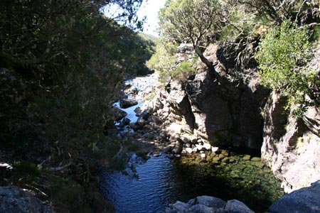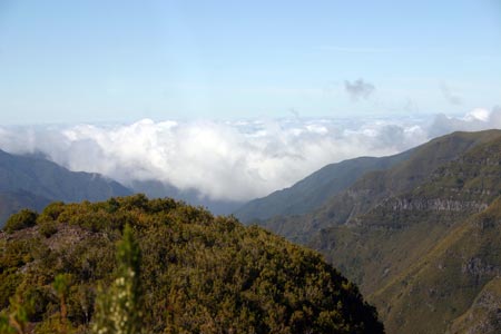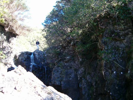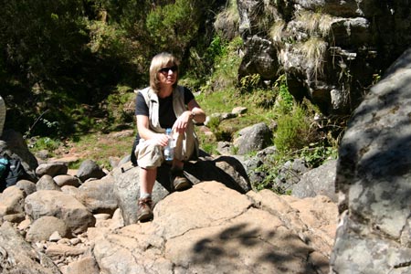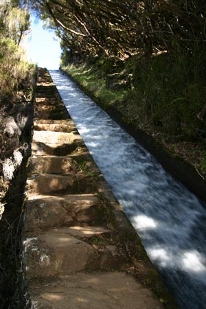 Heute war wieder wandern angesagt. Diese Wanderung beginnt an der Abzweigung der schmalen Fahrstrasse nach Rabaçal. Wir wandern ein Stück die Fahrstrasse nach Rabaçal bergab, bis nach ca. 100 m ein schmaler Pfad nach rechts abzweigt. Auf diesem Pfad erreichen wir bald die Levada, welche für den Rest dieser Wanderung unser Wegweiser sein wird. So erreichen wir nach einigen Minuten das Bachbett des Ribeira do Alecrim mit einer großen Levadaanlage . Die Levada wird nun etwas schmaler und führt zu einer Wasserrutsche . Treppen auf der linken Seite führen uns nach oben. Dort angekommen haben wir einen sehr schönen Ausblick auf das Tal des Ribeira da Janela, dem längsten Fluss Madeiras. Wir wandern weiter auf sehr schönem Weg, bis wir einen sehr schönen Bach queren, dessen Wasser in die Levada umgeleitet wird. Nun sehen wir bereits das Bachbett des Ribeira Grande, welches uns das baldige Ende der Levada ankündigt. Dieses ist nach kurzer Zeit erreicht und verwöhnt uns mit einem traumhaft gelegenen Wasserfall sowie mehreren Seen mit Forellen. Hier machen wir eine ausgiebige Rast an diesem traumhaften Ort. Ich steige noch einen Wasserfall höher und sehe mir das ganze von oben an. Auf gleichem Weg wandern wir zurück zum Ausgangspunkt. Zurück geht es über Port Moniz und wir sehen uns hier noch einmal die Wellen, die heute noch gewaltiger sind. Wieder gibt es hier Kaffe und Kuchen und es geht zurück zum Hotel. |