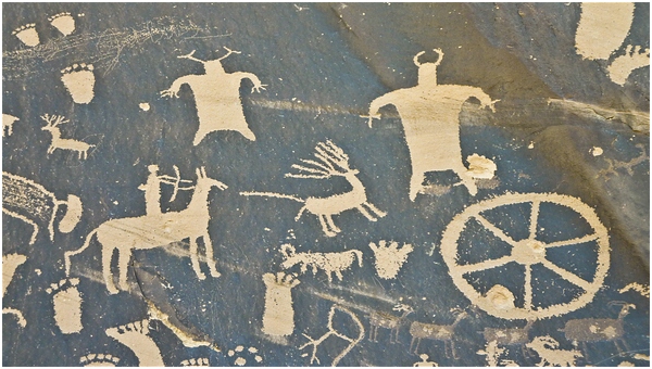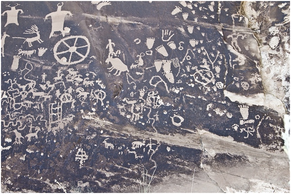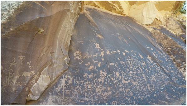 Newspaper Rock, hier legen wir einen ersten Stopp ein.